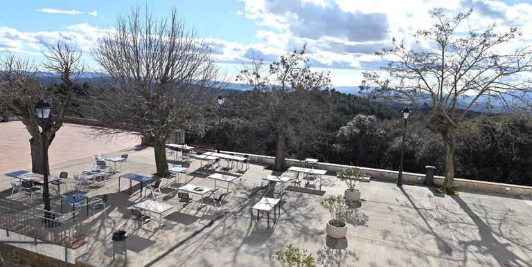 Rodeado de naturaleza y con vistas panorámicas excepcionales, cada espacio ofrece un ambiente único donde la tranquilidad y el entorno hacen especial cualquier ocasión. Además de las salas interiores, el santuario cuenta con zonas exteriores y terrazas que permiten disfrutar del paisaje en cualquier momento.