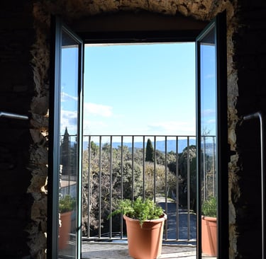 Desde este punto excepcional, se puede contemplar el Empordà, el Gironès e incluso el mar en días claros, creando una sensación única de amplitud y conexión con el paisaje.